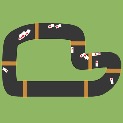 This is an interactive machine learning simulation where neural networks learn to drive around a track as fast as possible using a genetic algorithm.