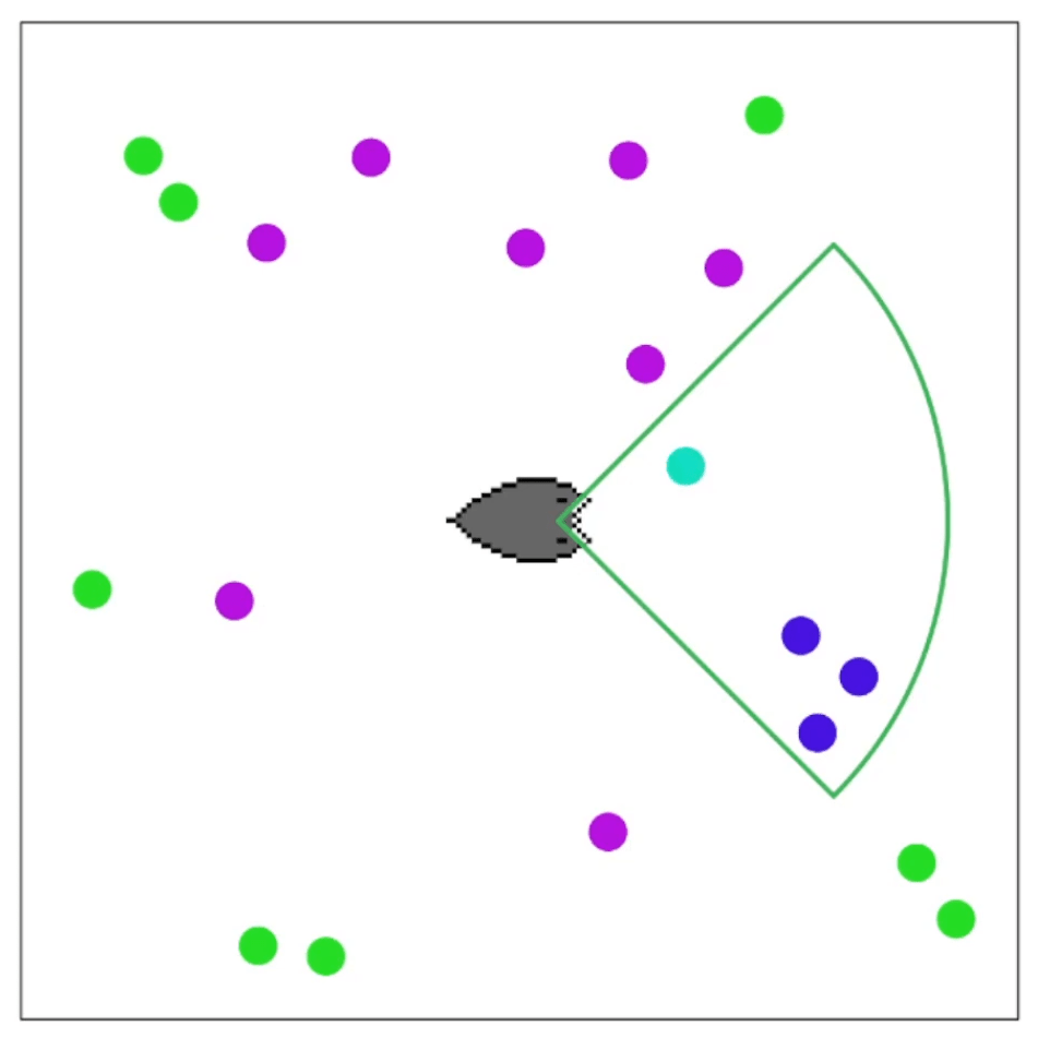 - The closest food pellet in the list is what the creature turns to (cyan)
